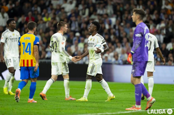 最终股票网上配资,总身价14亿欧元的皇马兵不血刃4-0完胜瓦伦西亚,银河战舰迎来各项赛事的6连胜。新赛季联赛11轮10胜1负,领先排名第二的比利亚雷亚尔7分。