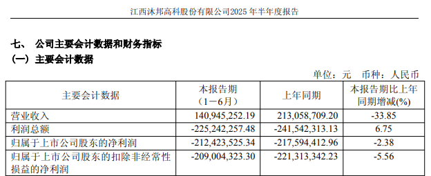 同时,*ST沐邦2024年度内控被出具否定意见的审计报告,涉及收入确认、募集资金管理、关联交易等方面的重大缺陷。2025年上半年,*ST沐邦的营业收入为1.41亿元、归母净利润为-2.12亿元。