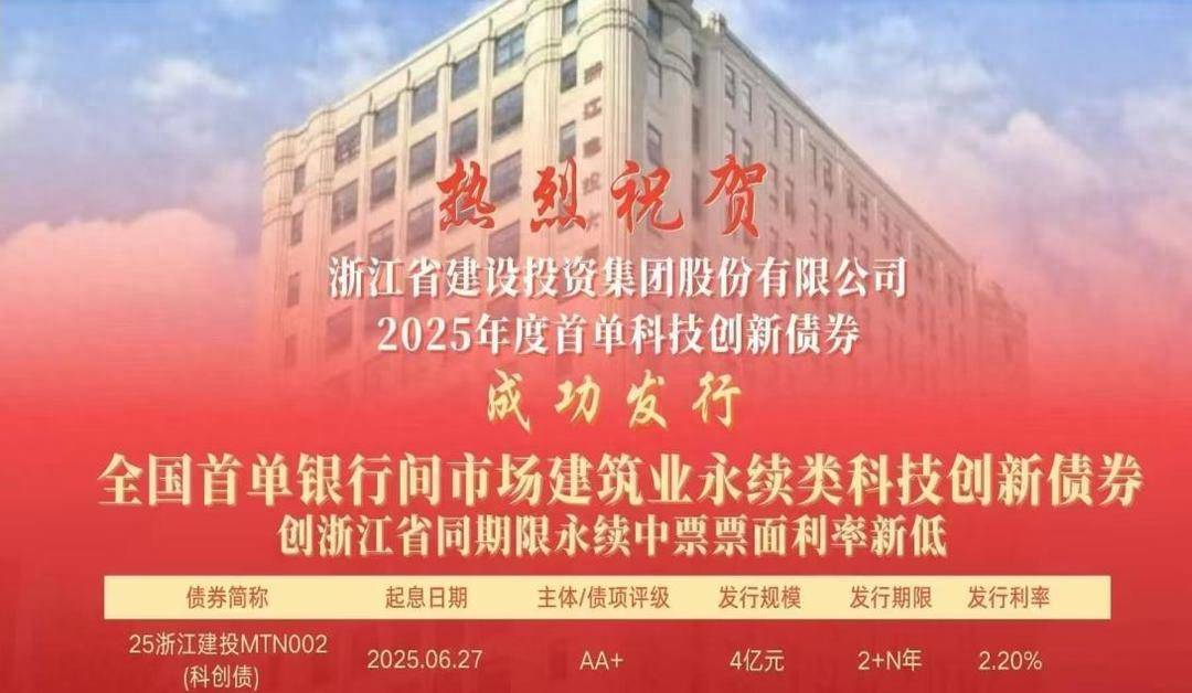 近日,恒丰银行助力全国首单银行间市场建筑业永续类科技创新债券完成发行。本期债券为浙江省建设投资集团股份有限公司2025年度第二期科技创新债券,发行规模4亿元,发行期限2+N年,票面利率2.2%专业炒股配资网站,创下浙江省同品种同期限永续中票票面利率历史新低。作为本期债券的联席主承销商,恒丰银行承销金额1亿元。