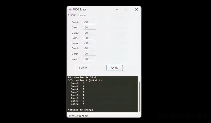 软件选择就比较多了,比如AMD平台可以通过Ryzen Master(锐龙大师)进行曲线优化(Curve Optimizer)实现负电压偏移,精准控制每个核心的电压冗余,实现降压;